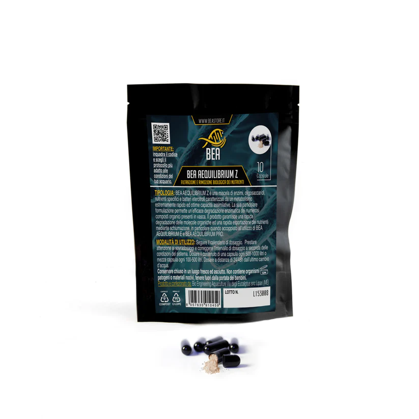 BEA AEQUILIBRIUM Z è una miscela di enzimi, oligosaccaridi, nutrienti specifici e batteri eterotrofi caratterizzati da un metabolismo estremamente rapido ed ottime capacità assimilative.La sua particolare formulazione, gli permette un efficace degradazione enzimatica dei numerosi composti organici presenti in acquario.