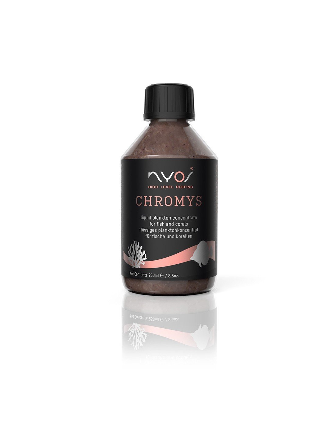 CHROMYS contiene Mysis Relicta (0,2-20mm)di alta qualità. E’ un nutrimento ideale per moltissime specie di pesci marini e LPS. CHROMYS aumenta la vitalità dei pesci marini ed accelera la crescita dei coralli.